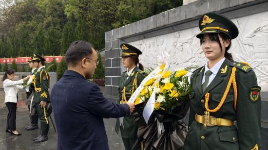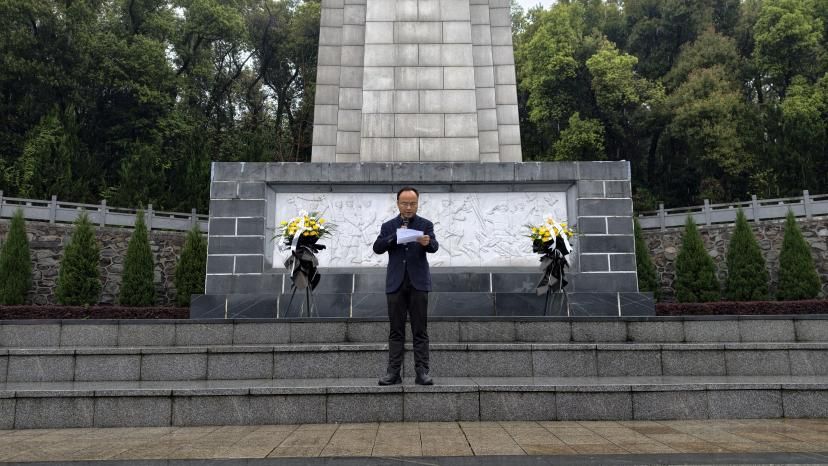 上午9时,祭扫仪式正式开始。全体师生在烈士纪念碑前整齐列队,奏唱《中华人民共和国国歌》,随后脱帽默哀一分钟,深切缅怀革命先烈的不朽功勋。4名学生代表敬献花篮,学校党委委员、副校长何子恢与团委书记薛毅上前整理花篮缎带,表达对先烈的崇高敬意。